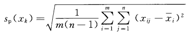 若對每個(gè)被測件已分別按n次重復(fù)測量算出了其實(shí)驗(yàn)標(biāo)準(zhǔn)偏差si,則m組測得值的合并樣本標(biāo)準(zhǔn)偏差sp(xk)可按公式12計(jì)算: